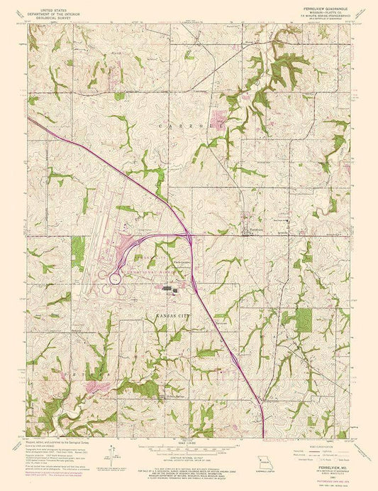 Ferrelview Missouri Quad - USGS 1961 White Modern Wood Framed Art Print with Double Matting by USGS
