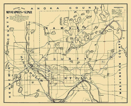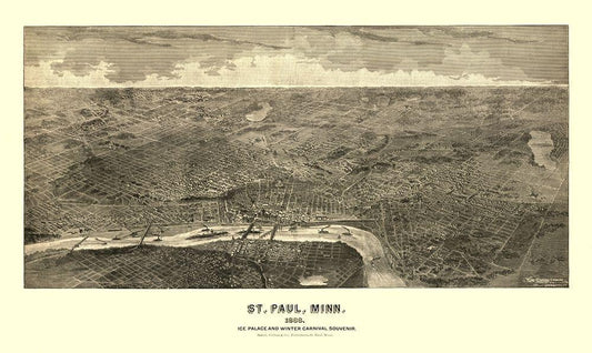 St Paul Minnesota - Shober 1874 White Modern Wood Framed Art Print with Double Matting by Shober