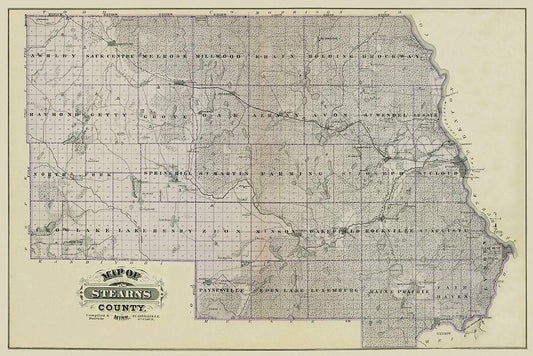 Stearns Minnesota Landowner - Andreas 1874 White Modern Wood Framed Art Print with Double Matting by Andreas