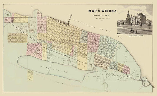 Winona Minnesota - Andreas 1874 White Modern Wood Framed Art Print with Double Matting by Andreas