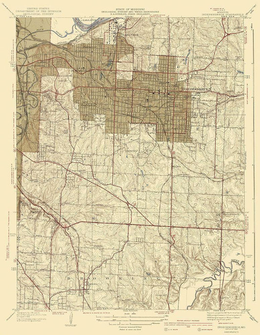 Independence Missouri Quad - USGS 1940 White Modern Wood Framed Art Print with Double Matting by USGS