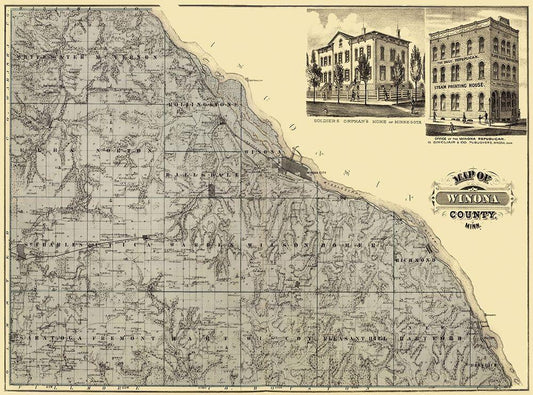 Winona Minnesota Landowner - Andreas 1874 White Modern Wood Framed Art Print with Double Matting by Andreas