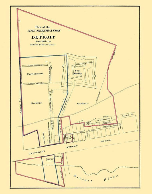 Detroit Michigan Military Reservation Plan 1860 White Modern Wood Framed Art Print with Double Matting by Bowen