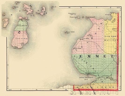 Charlevoix Antrim Michigan - Walling 1873 White Modern Wood Framed Art Print with Double Matting by Walling