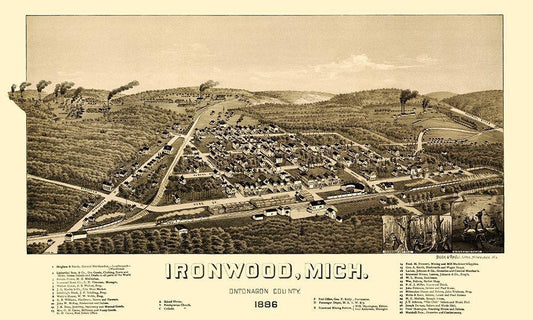 Ironwood Michigan - Beck 1886 White Modern Wood Framed Art Print with Double Matting by Beck