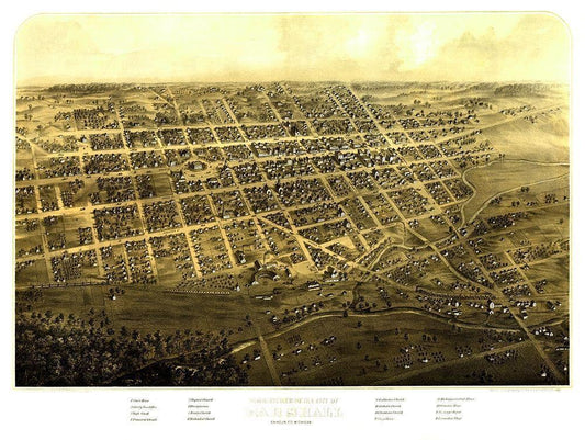 Kalamazoo Michigan - Walling 1873 White Modern Wood Framed Art Print with Double Matting by Walling