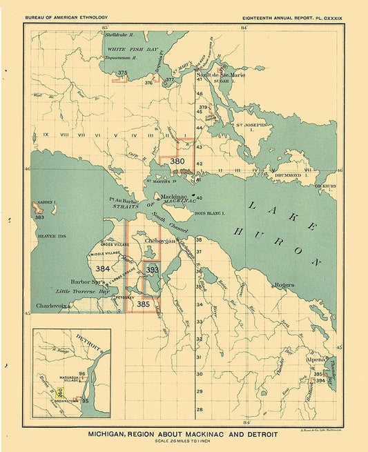 Michigan - Mackinac Detroit - Hoen 1896 White Modern Wood Framed Art Print with Double Matting by Hoen