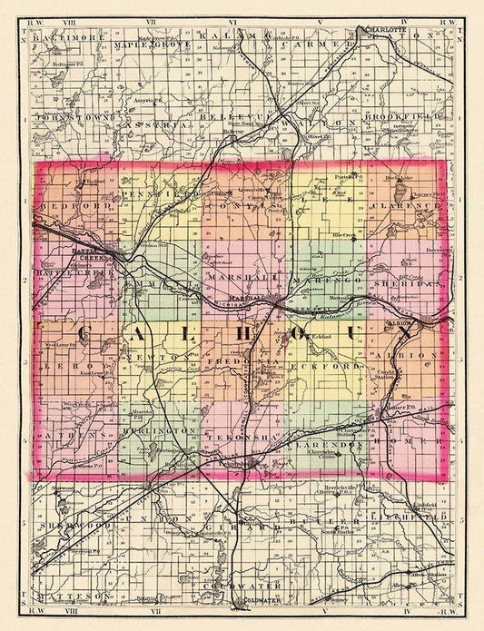 Calhoun Michigan - Walling 1873 White Modern Wood Framed Art Print with Double Matting by Walling