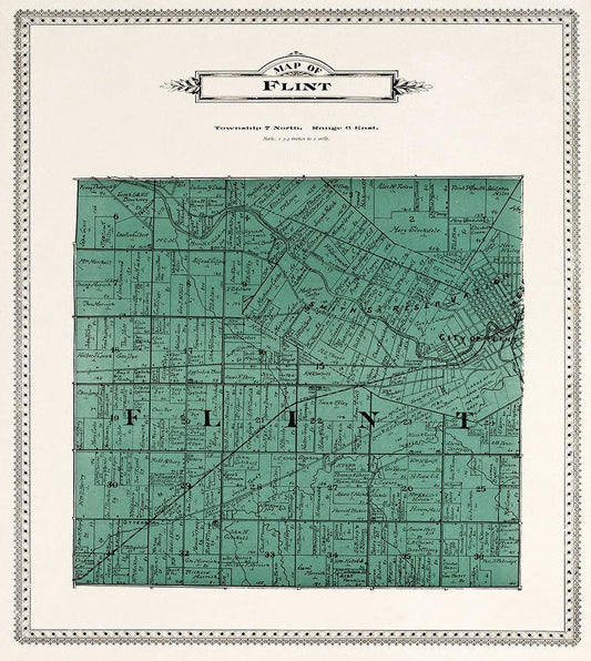 Flint Michigan Landowner - Day 1899 White Modern Wood Framed Art Print with Double Matting by Day