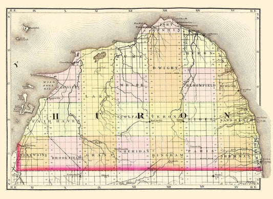 Huron Michigan - Walling 1873 White Modern Wood Framed Art Print with Double Matting by Walling