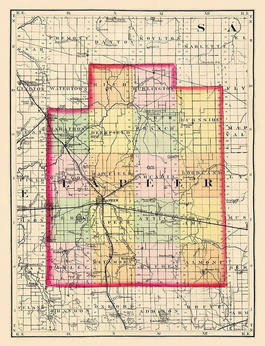Montcalm Michigan - Walling 1873 White Modern Wood Framed Art Print with Double Matting by Walling