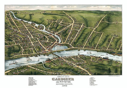 Gardiner Maine - Stoner 1878 White Modern Wood Framed Art Print with Double Matting by Stoner