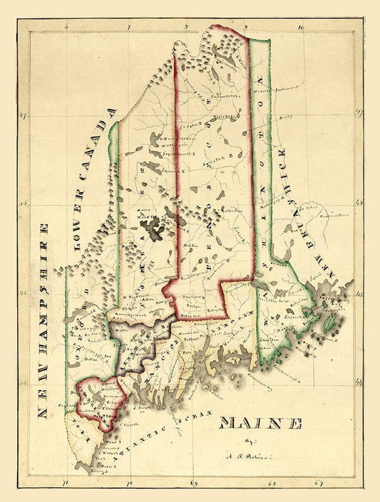 Maine - Perkins 1820 White Modern Wood Framed Art Print with Double Matting by Perkins