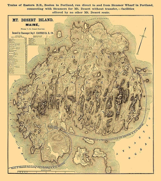 Mount Desert Island Maine - Eastern Railroad Co 1890 White Modern Wood Framed Art Print with Double Matting by Eastern Railroad Co