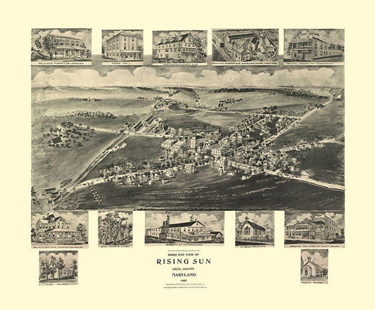 Rising Sun Maryland - Fowler 1907 White Modern Wood Framed Art Print with Double Matting by Fowler