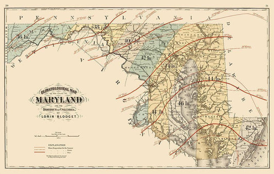 Maryland - Blodget 1873 White Modern Wood Framed Art Print with Double Matting by Blodget