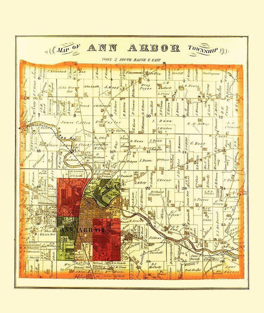 Ann Arbor Michigan Landowner - Everts 1874 White Modern Wood Framed Art Print with Double Matting by Everts