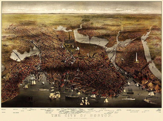 Boston Massachusetts - Currier 1873 White Modern Wood Framed Art Print with Double Matting by Currier