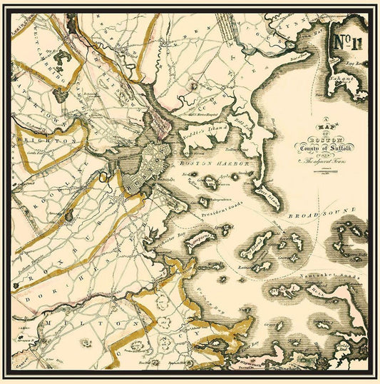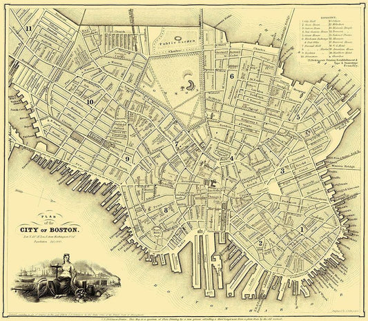 Boston Massachusetts - Dearborn 1841 White Modern Wood Framed Art Print with Double Matting by Dearborn