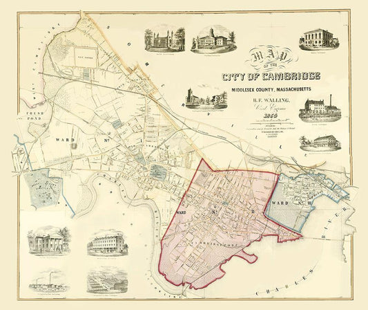 Cambridge Massachusetts - Friend 1854 White Modern Wood Framed Art Print with Double Matting by Friend