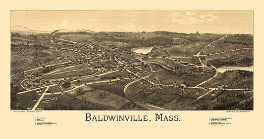 Baldwinville Massachusetts - Burleigh 1886 White Modern Wood Framed Art Print with Double Matting by Burleigh