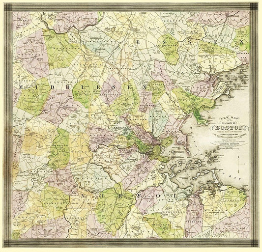 Boston Massachusetts - Dickinson 1844 White Modern Wood Framed Art Print with Double Matting by Dickinson