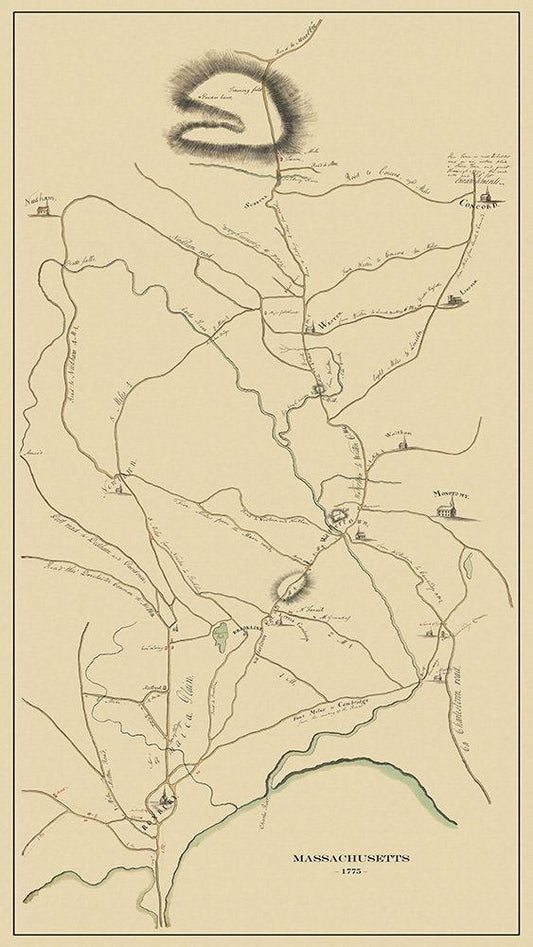 Road to Concord Massachusett - Browns 1775 White Modern Wood Framed Art Print with Double Matting by Browne