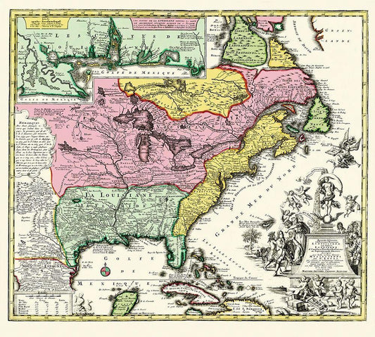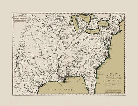 Louisiana and Neighboring Countries - Bellin 1744 White Modern Wood Framed Art Print with Double Matting by Bellin