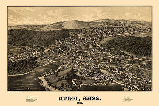 Athol Massachusetts - Burleigh 1887 White Modern Wood Framed Art Print with Double Matting by Burleigh