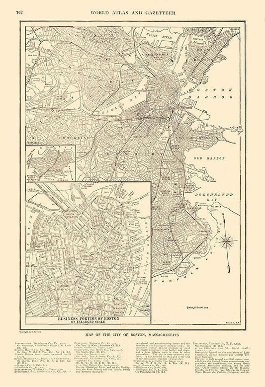 Boston Massachusetts - Cram 1892 White Modern Wood Framed Art Print with Double Matting by Cram