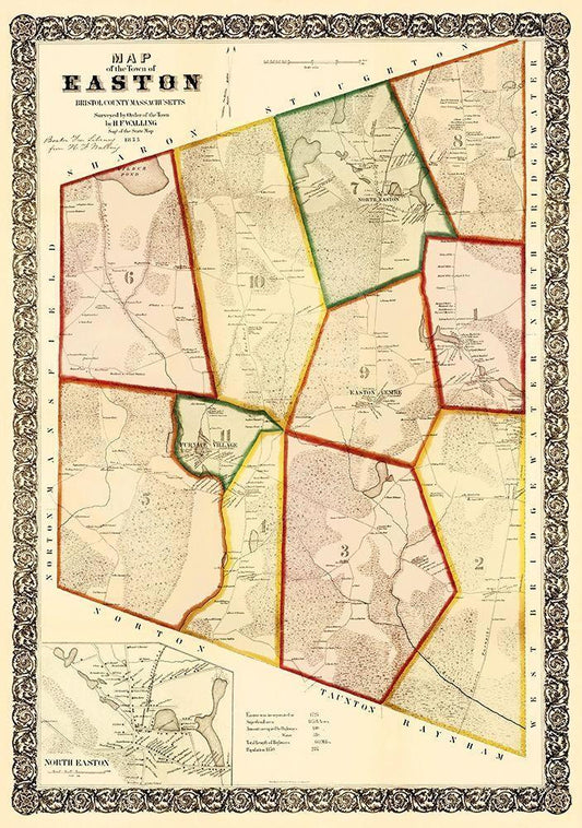 Easton Massachusetts - Mayer 1856 White Modern Wood Framed Art Print with Double Matting by Mayer