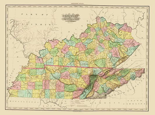 Kentucky, Tennessee Counties - Tanner 1825 White Modern Wood Framed Art Print with Double Matting by Tanner