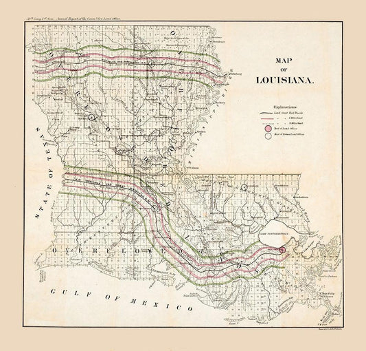 Louisiana Railroads - Colton 1863 White Modern Wood Framed Art Print with Double Matting by Colton