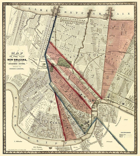 New Orleans Louisiana - Colton 1855 White Modern Wood Framed Art Print with Double Matting by Colton