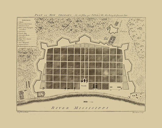 New Orleans Louisiana -1788 White Modern Wood Framed Art Print with Double Matting by Unknown