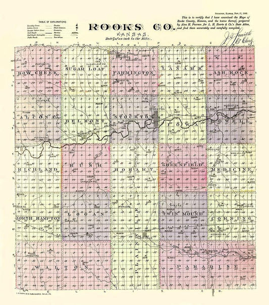 Rooks Kansas - Everts 1887 White Modern Wood Framed Art Print with Double Matting by Everts