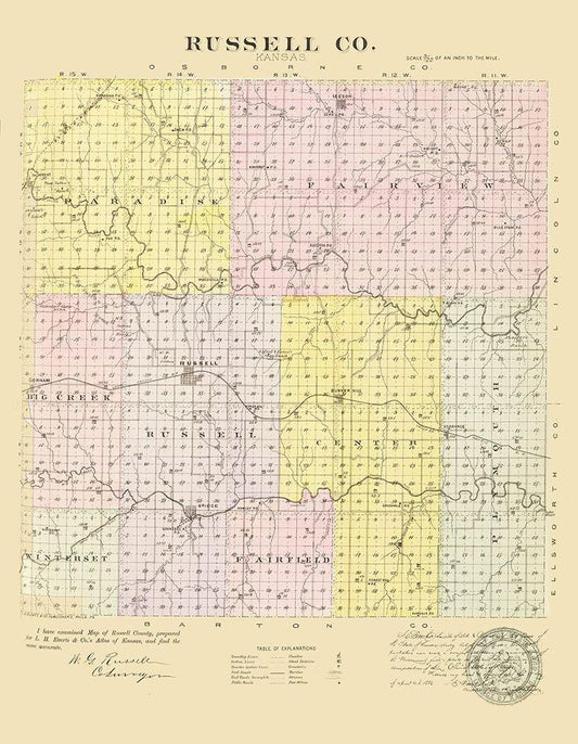Russell Kansas - Everts 1887 White Modern Wood Framed Art Print with Double Matting by Everts