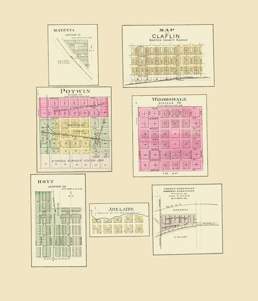 Mayetta, Claflin, Potwin, Woodsdale, Hoyt Kansas White Modern Wood Framed Art Print with Double Matting by Everts