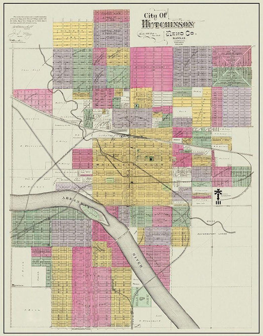 Hutchinson Kansas Landowner - Everts 1887 White Modern Wood Framed Art Print with Double Matting by Everts