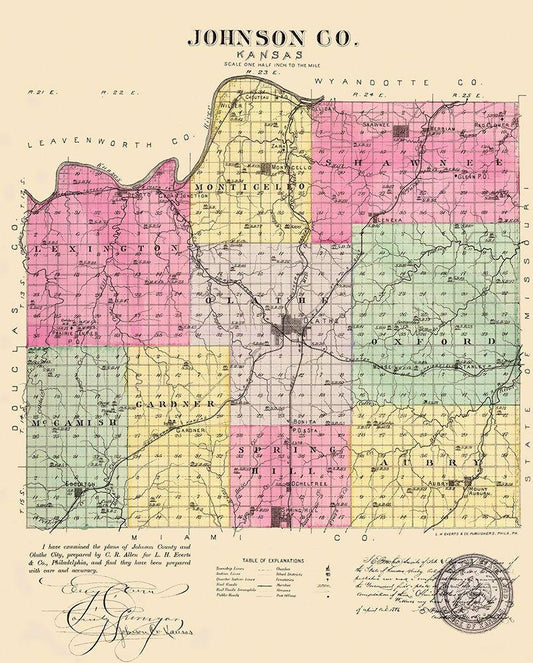 Johnson Kansas - Everts 1887 White Modern Wood Framed Art Print with Double Matting by Everts
