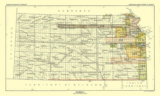 Kansas - Hoen 1896 White Modern Wood Framed Art Print with Double Matting by Hoen