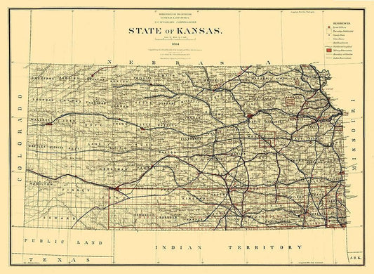 Kansas - Strum 1884 White Modern Wood Framed Art Print with Double Matting by Strum