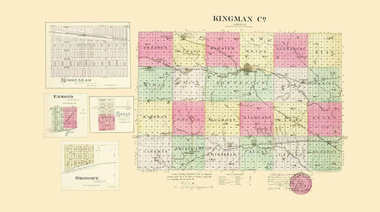 Kingman Kansas - Everts 1887 White Modern Wood Framed Art Print with Double Matting by Everts