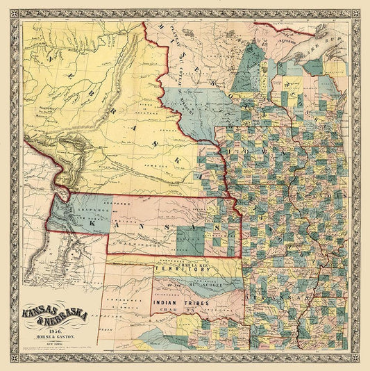 Kansas Nebraska - Gaston 1856 White Modern Wood Framed Art Print with Double Matting by Gaston