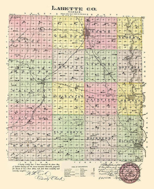 Labette Kansas - Everts 1887 White Modern Wood Framed Art Print with Double Matting by Everts