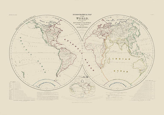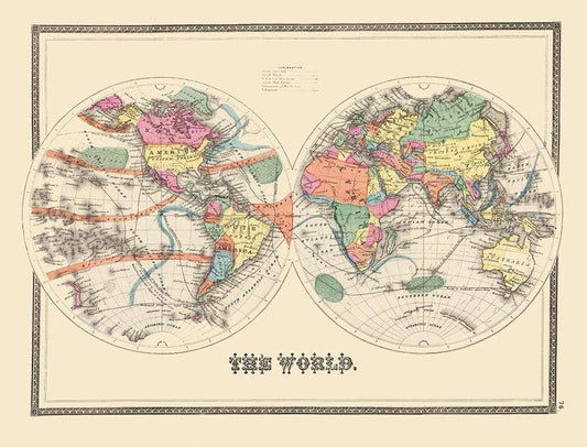 Western Eastern Hemispheres - Monin 1839 White Modern Wood Framed Art Print with Double Matting by Monin