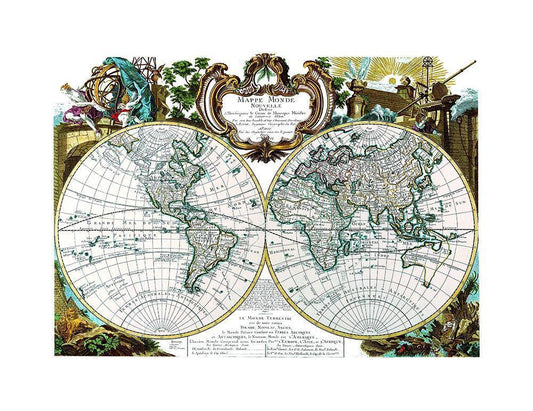 Western Eastern Hemispheres White Modern Wood Framed Art Print with Double Matting by Unknown