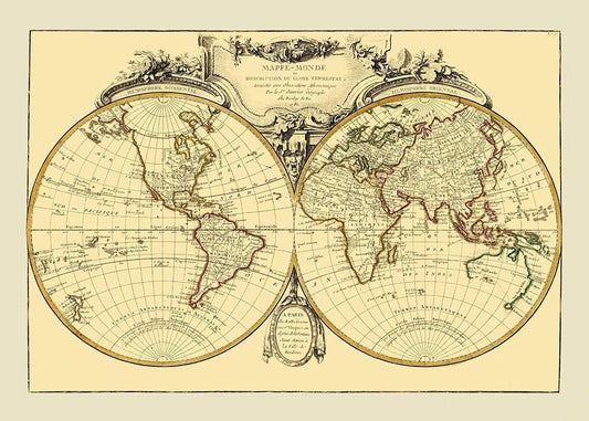 World - Janvier 1782 White Modern Wood Framed Art Print with Double Matting by Janvier