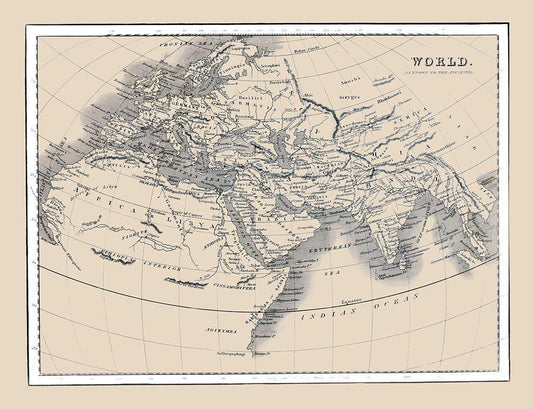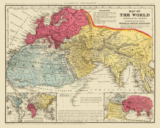 World Known to Ancients - Mitchell 1844 White Modern Wood Framed Art Print with Double Matting by Mitchell