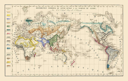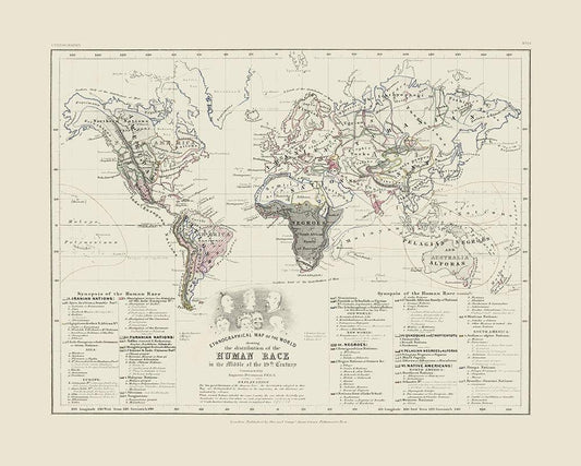 Human Races 19th Century - Petermann White Modern Wood Framed Art Print with Double Matting by Petermann